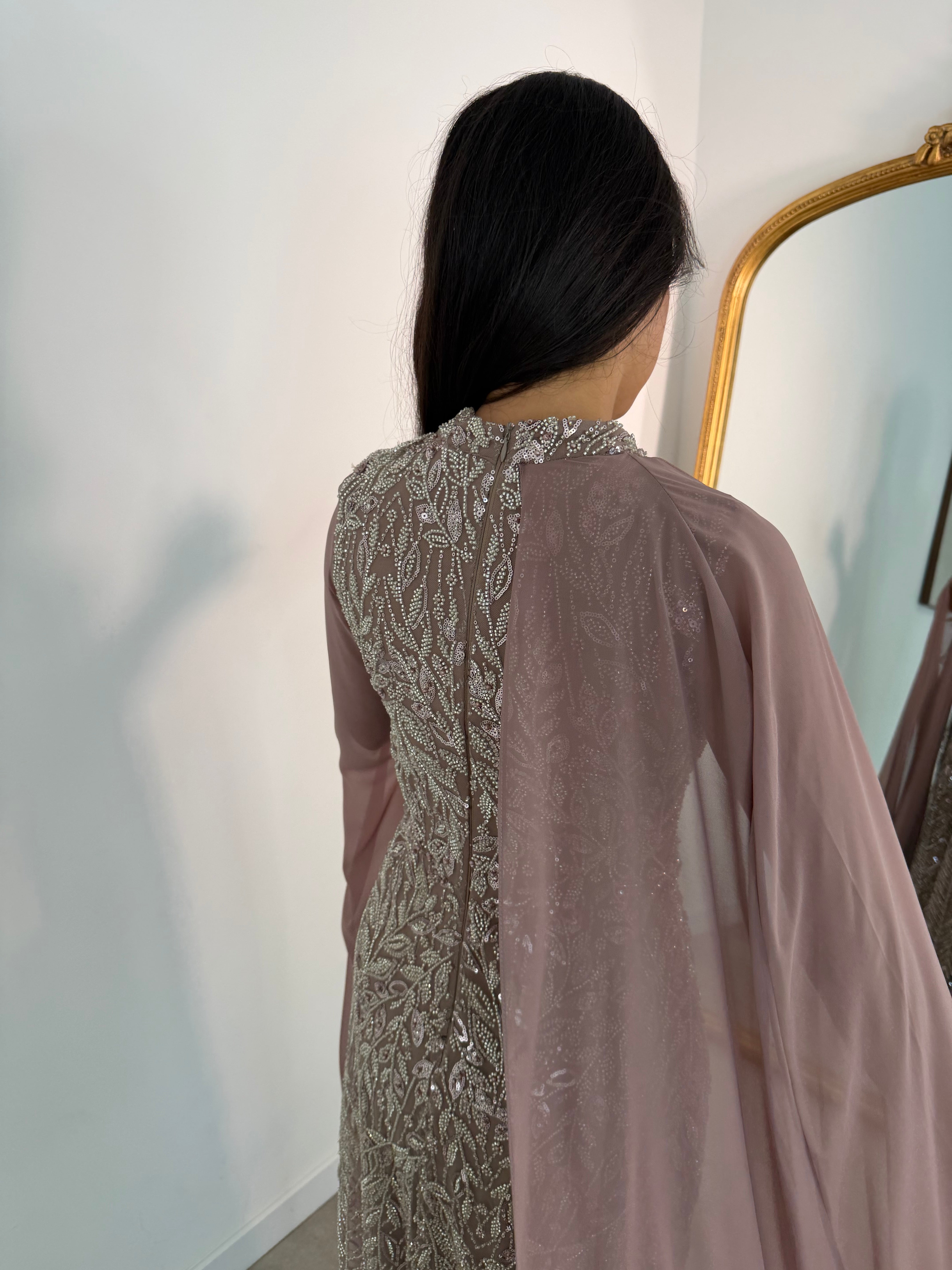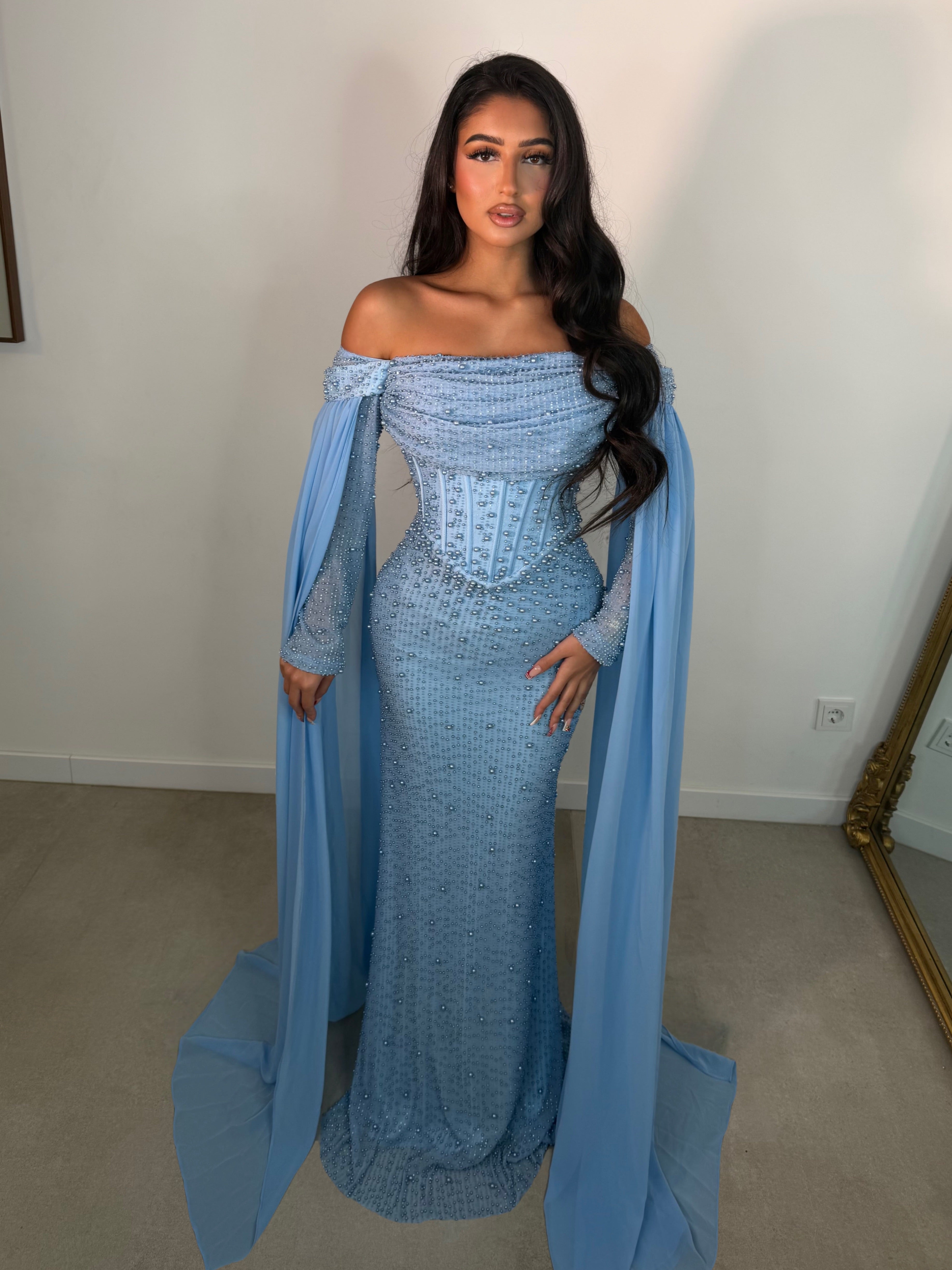 Wir empfehlen eine schonende Handwäsche oder professionelle Reinigung, damit Farbe und Form deines Kleides langfristig erhalten bleiben.